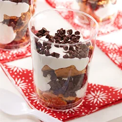 Repeat layers of crumbled graham cracker, marshmallow crème, and mini chocolate chips. Create sundaes in similar fashion for all guests.